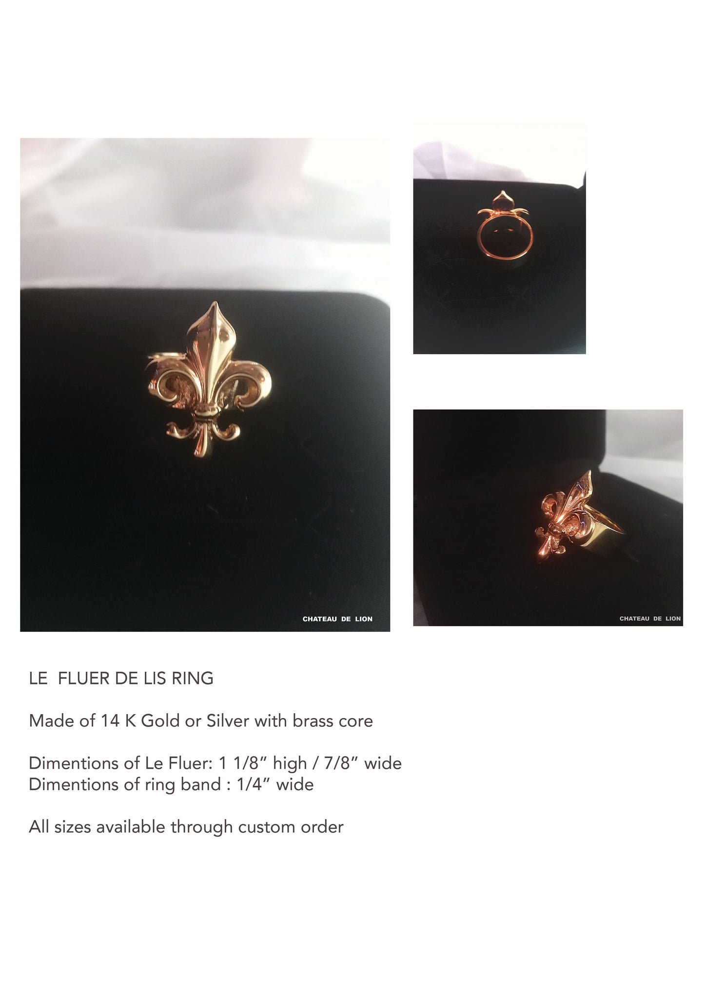 For questions, solid gold or silver pieces , custom orders or shipping over seas please Email : info@chateaudelion.com