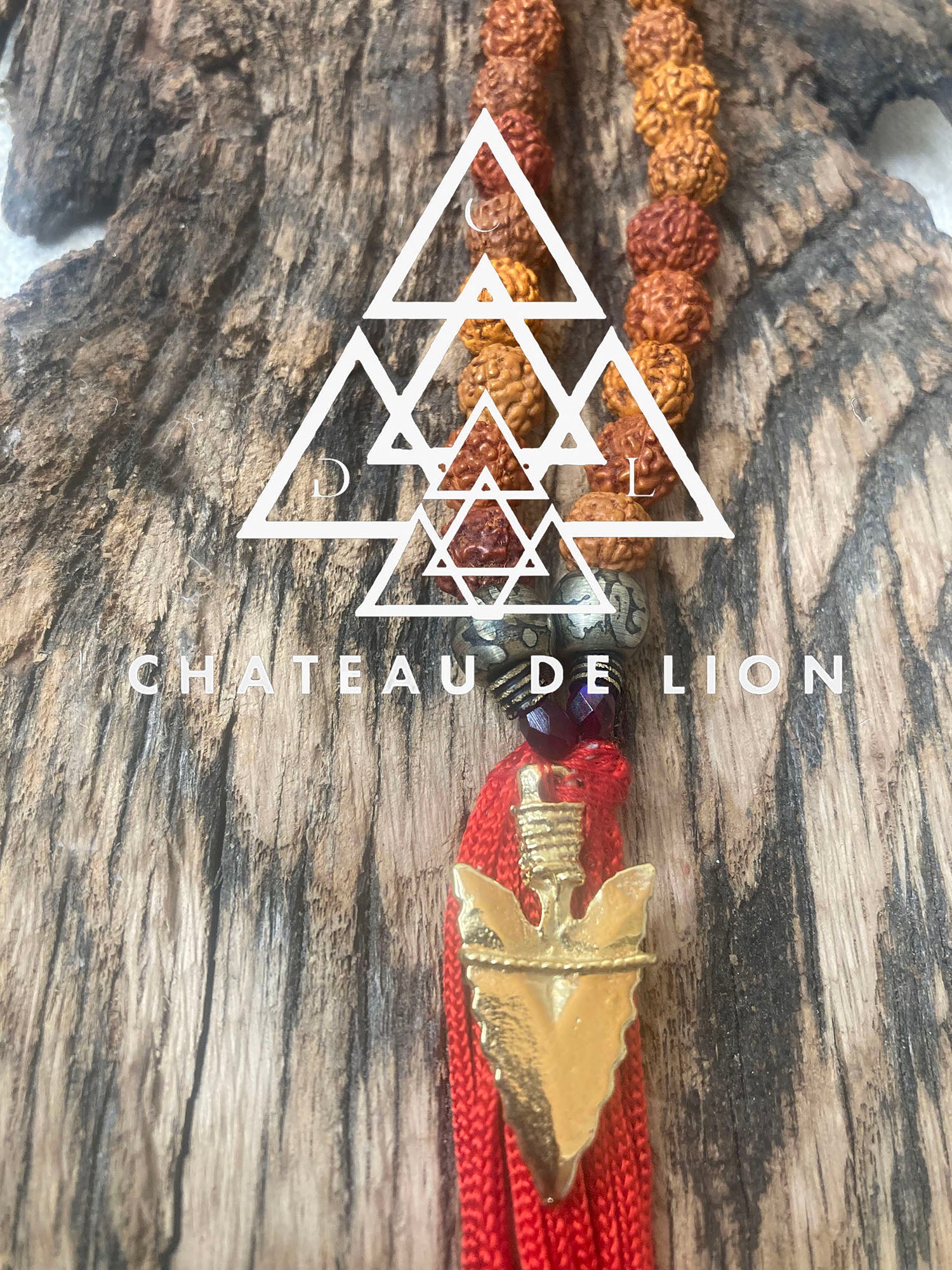 Made of hand made fair trade Tibetan Beads and Rudraksha beads of the finest quality. The Arrow pendant can be made with Either Sterling Silver or 24K Gold. Brass core with a thick plated finish!