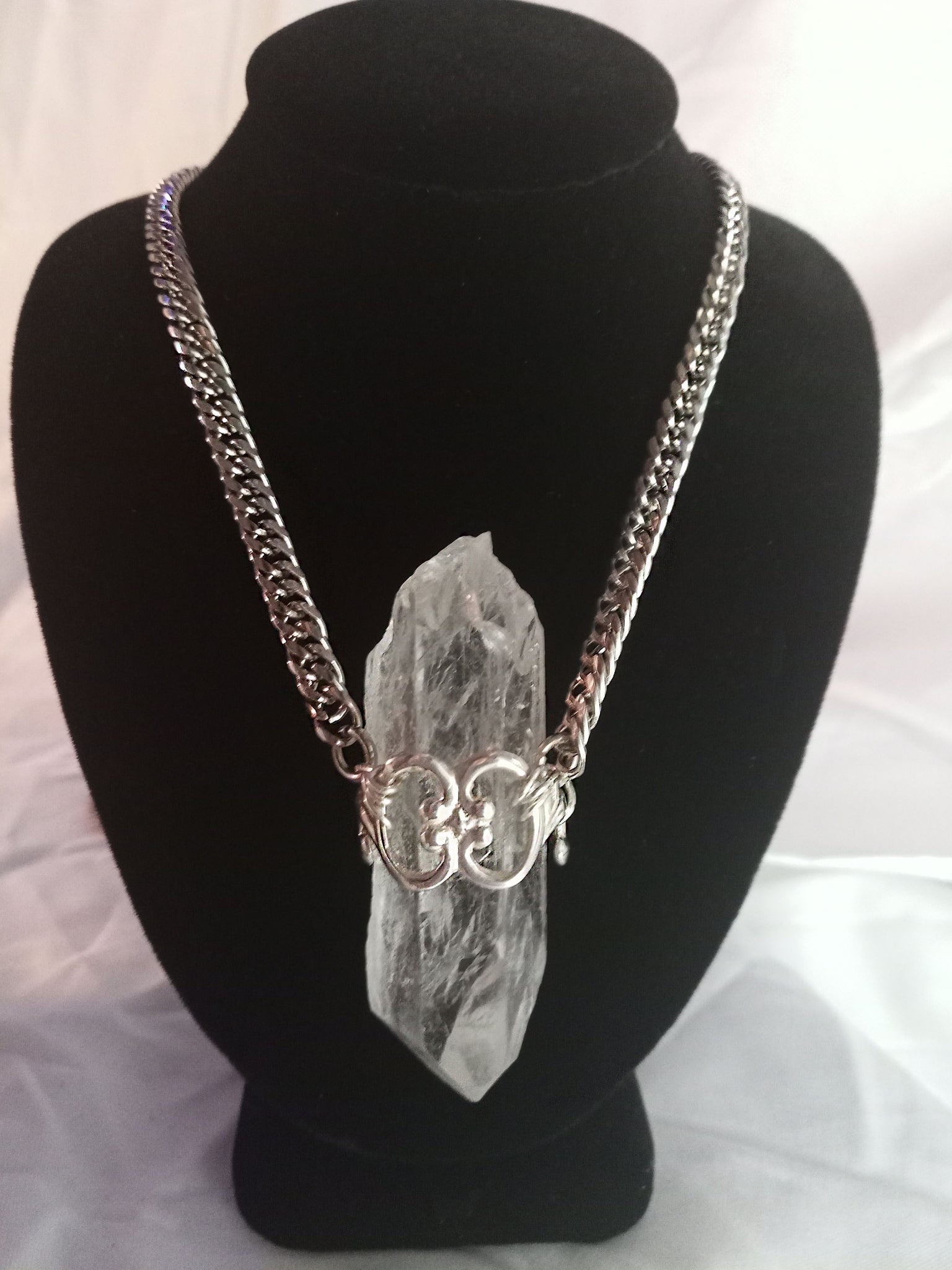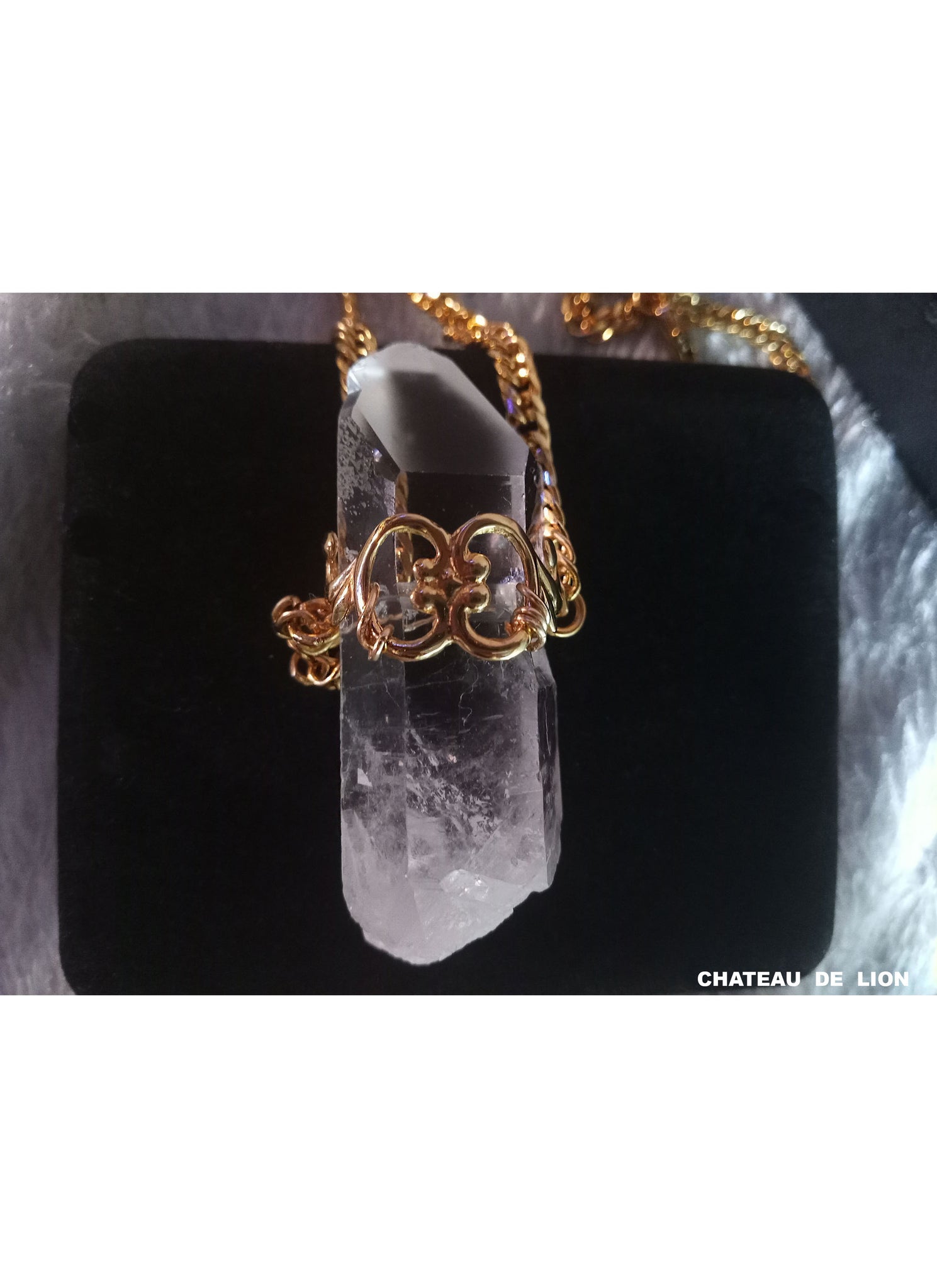 The Spirit Crystal Amulet Necklace is surely stunning! Made of Sterling Silver or 14K Gold Fluer De Lis motif wrapped around the finest quality Activated Clear Quartz Crystal Point to bring you a powerful Amulet that not only is stylish but also brings higher positive vibrations of love and positivity to you while clearing any negative energy!
